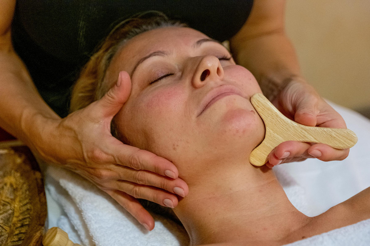 Cette technique s’effectue par frictions (peau/outils en bois) combinée à l’utilisation d’huiles, crème etc… en fonction des besoins du client. Initialement, cette technique était utilisée pour reéquilibrer l’énergie et réduire le stress.